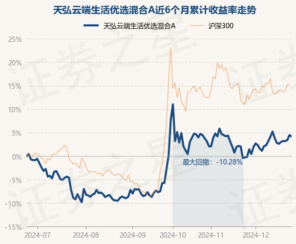 本站音尘,12月25日,天弘云表生涯优选搀杂A最新单元净值为1.0772元,累计净值为1.0772元,较前一往已往着落0.28%。历史数据涌现该基金近1个月高涨4.47%,近3个月高涨10.48%,近6个月高涨4.18%,近1年高涨6.23%。该基金近6个月的累计收益率走势如下图: